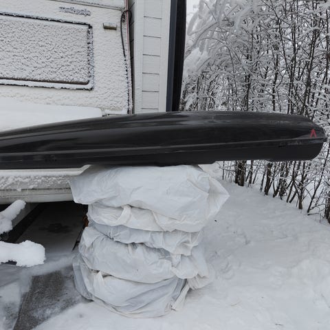 Kuvien mukainen,täysin ehjä ja pieneksi boxiksi yllättävän paljon sisäänsä kätkevä looda katolle..