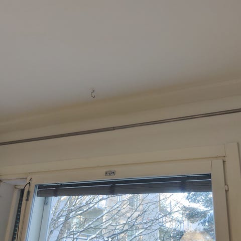 Musta metallinen verhotanko, pituus 200cm ja voi pidentää vielä +200cm. Verhorenkaat saa kaupan päälle :)