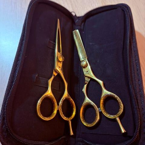 Merkistä ja mallista ei tietoa. Leikkaus ja ohennussakset. Oikeakätiselle.