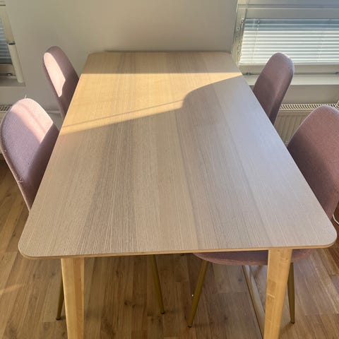 Hyväkuntoinen Ikean Lisabo ruokailupöytä. Jaloissa on pieniä käytön jälkiä, mutta muuten siisti. Ei naarmuja tai kolhuja pöytälevyn pinnassa.