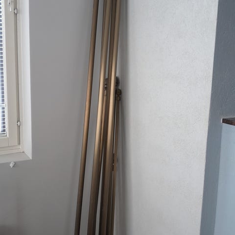 Myydään 3 kpl vanhoja messinkisiä verhotankoja. Pituudet noin 159cm ja kaksi noin 80cm. Lisäksi 4 kpl seinäkiinnikkeitä, 4 kpl päätyjä ja 13 kpl verhorenkaita nipsuineen ja 3 kpl ilman nipsuja.