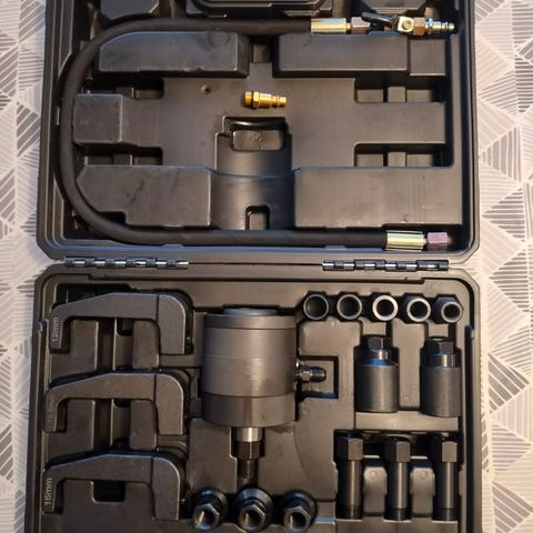Valmistaja: TimcoKäyttötarkoitus: diesel-suuttimien irrotusYhteensopivuus: Bosch, Delphi, Denso, SiemensLiukuvasarat: 1,3 kg (150 mm akseli) ja 4 kg (400 mm akseli)Taipuisa nivelSovittimet uros: 10 x 1,5, 16 x 1,5, 17 x 1, 20 x 1, 25 x 1, 27 x 1 mmSovittimet naaras: 14 x 1,5, 27 x 1 mm (3 kpl)Kuusikulmaiset sovittimet: 17 mm (10 x 1,5 naaras), 21 mm (14 x 1,5 naaras)Sovittimet: C ja JSuuttimen kannen liitännät: 1/2" Square DriveHylsykoot: 25, 27, 29, 30 mm