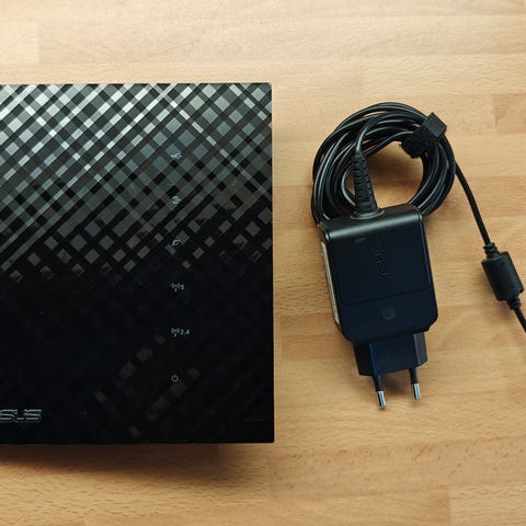 Asus RT-N56U reititin kotiverkon jakamiseen. Laitteessa on useita Ethernet-portteja kiinteille verkkoyhteyksille sekä liitännät internet-yhteyden kytkemistä varten. Mukana virtalähde. Soveltuu esimerkiksi kodin tai pienen toimiston langalliseen ja langattomaan verkkokäyttöön, kuten tietokoneiden, älylaitteiden ja muiden verkkolaitteiden yhdistämiseen samaan verkkoon.
