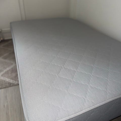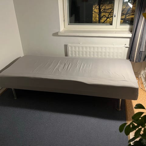 IKEA sänky runkopatjalla. Sängyssä on vaaleanharmaa runko ja valkoinen paksu päällyspatja. Sängyn alla on vaaleat jalat, jotka nostavat sängyn irti lattiasta ja helpottavat siivousta. Sopii yhden hengen sängyksi makuuhuoneeseen tai vierashuoneeseen. Tarkemmat mitat ja patjan kovuus eivät käy ilmi tiedoista. Nouto/ kuljetus vihti,(nummelaan)