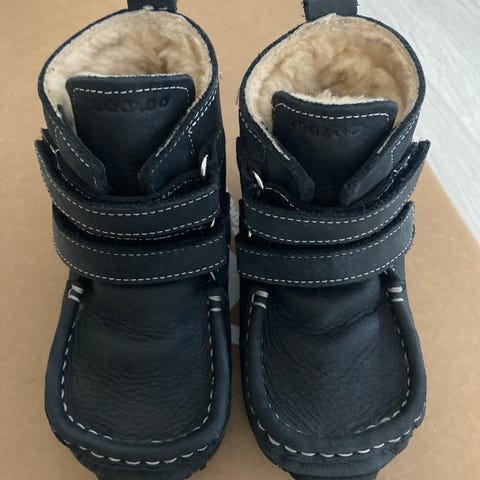 Mustat nahkakengät villavuorella, merkki ZeaZoo Yeti. Käytetty yhdellä ja sen jälkeen toisella yksittäisiä kertoja, kun ehti jäädä pieneksi.