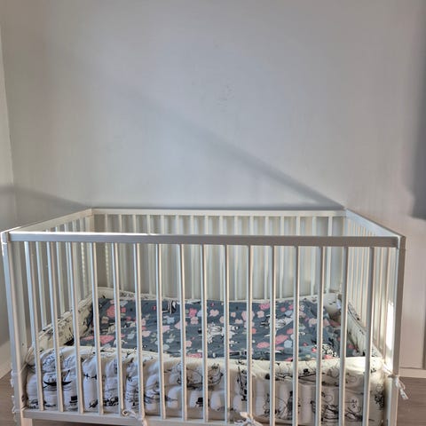 Hyväkuntoinen pinnasänky, pieniä käytönjälkiä kuitenkin reunoissa. Irroitettava laita ja säädettävä pohja. Menee siis pitkään. Mukaan ikean krummelur patja jossa pestävä päällinen. Mukaan ikean turvalaita, reunapehmuste, vauvan peitto ja tyyny, kosteussuoja patjaan sekä avaamaton pinnasängyn lakana.