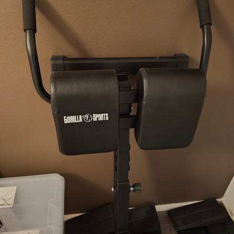 Uusi Gorilla Sports Heavy Duty -tasapenkki voimaharjoitteluun. Penkki on musta ja siinä on pehmustettu selkäosa keinonahkaisella päällisellä.