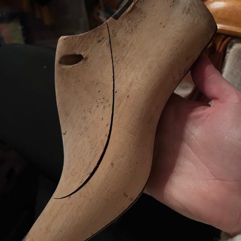 Vanhat, puiset kenkälestit. Pituus 26 cm, vastaa noin kokoa 40-41. Lestit ovat vanhat ja kuluminen näkyy. Itse olen käyttänyt niitä huopatossujen huovuttamisessa.