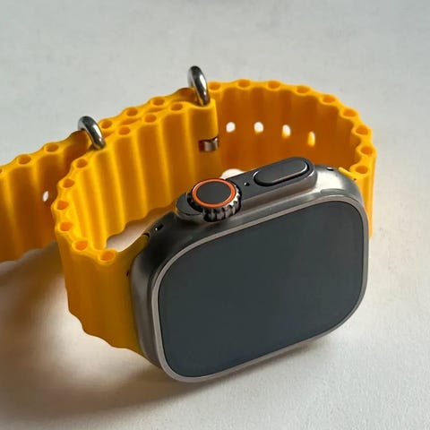 Apple Watch Ultra 49mm titaanikuorella. Virheetön kunto, ei naarmuja tai kolhuja. Näyttö safiirilasia, täysin naarmuton toisin kuin tavallisissa malleissa. Akun kunto 85%. Hieman liian iso omaan ranteeseen, voin vaihtaa pienempään, esim Watch Series 11 46mm kelloon.