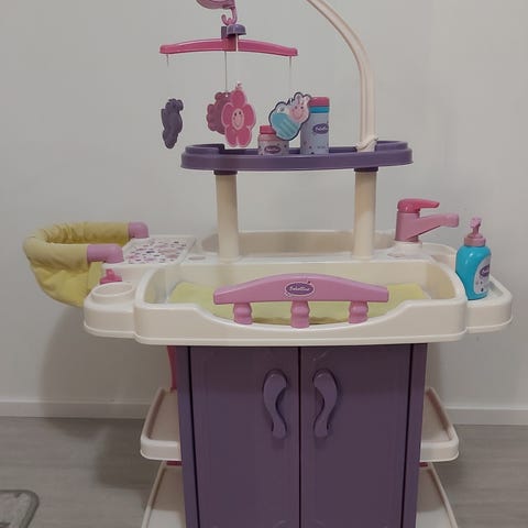 Nuken hoitopöytä. Muovia, irrotettavia osia. Käytetty, mutta menee hyvin seuraavalle leikkijälle. Eläimetön ja hajuton talous. Nouto Pikku-Huopalahti Helsinki