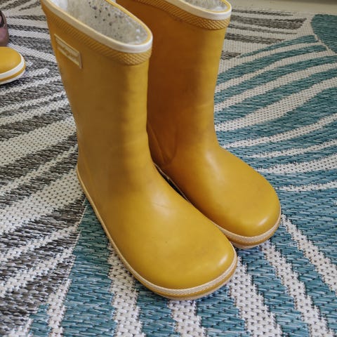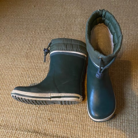 Uutena ostetut ja yhdellä käytetyt siistit mutta hieman värjäytyneet käytöstä bundgaard kumisaappaat 28, SM kuvissa.