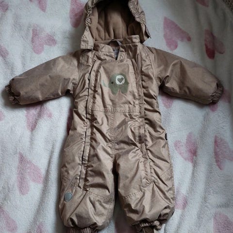 Vähällä käytöllä ollut Jonathan merkkinen toppahaalari. Vetoketjut toimivat ja molemmat lenksut kunnossa. Pidetty päällä lähinnä vaunuissa.