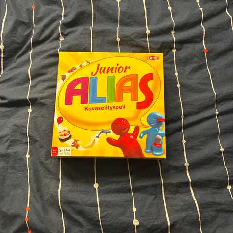 Tactic Junior Alias lautapeli on kuvanselityspeli lapsille. Pelissä selitetään kuvakorteissa näkyviä asioita ilman, että sanaa mainitaan, ja muut pelaajat yrittävät arvata oikean vastauksen. Peli sisältää kuvakortteja, pelinappuloita ja tiimalasin ajanottoa varten. Sopii useamman pelaajan ryhmäpelaamiseen ja sanavaraston harjoitteluun. Pelissä 300 kuvakorttia, mutta jos oikein laskin, niin tässä on 299. Ei haittaa menoa.