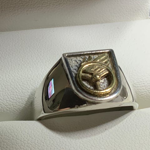 Ilmavoimien hakaristitunnuksella varustettu rautasormus