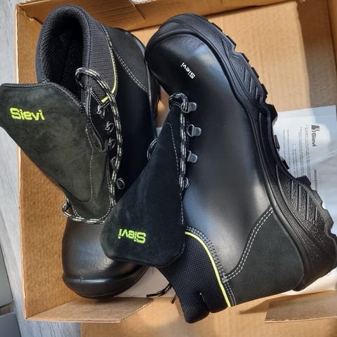 Kokonahkainen S3-luokan varvas- ja naulaanastumissuojattu Gore-Tex korkeavartinen turvajalkine.