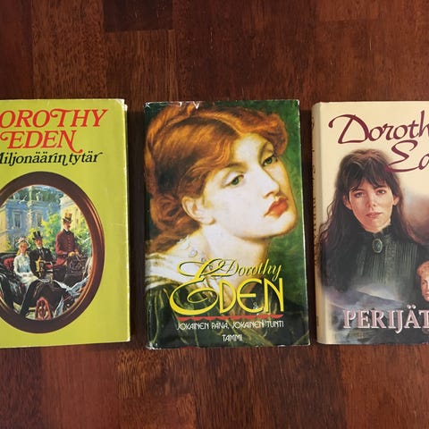 Kaikki siistikuntoisia, osa lähes uudenveroinen, #3 pehmeäkantinen, muut kovakantisia kirjoja; #2 ilmeisesti tippunut ja kannen alareunoissa pientä kolhua & kirjassa muutama pieni sormitahra tms; kansissa/kansipaperissa vaihtelevasti säilytysjälkeä