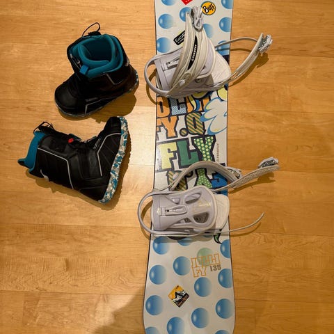 Myydään hyväkuntoinen lasten lumilauta Firefly JOLLIFY 105 cm, siteet Warp.