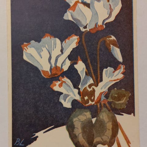 Tässä on Venäjällä syntyneen ja Berliinissä kuolleen Catharina Antonie Kleinin piirtämiä postikortteja. Ne maksavat 2 euroa kappale. Postimaksu on 2,75 euroa 50 grammaan asti kirjeessä. Sitä painavampi kirje on 5,50 euroa.