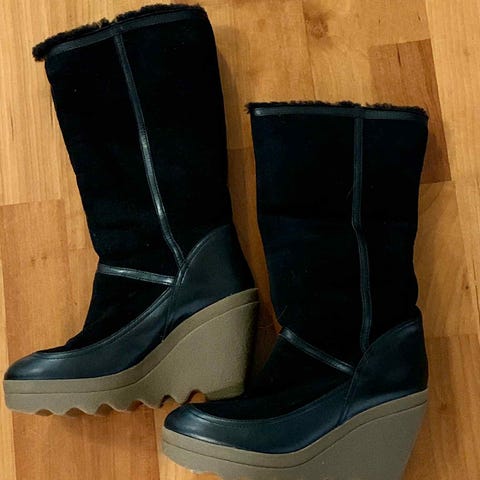 Amsterdam Schabbies kauniit talvisaappaat. Laadukasta nupukkia, aito villavuori. Pohjassa koko 38, mutta on pieni 38, siksi ennemmin mielestäni 37. Pari kertaa kokeiltu, liian pienet itselle.