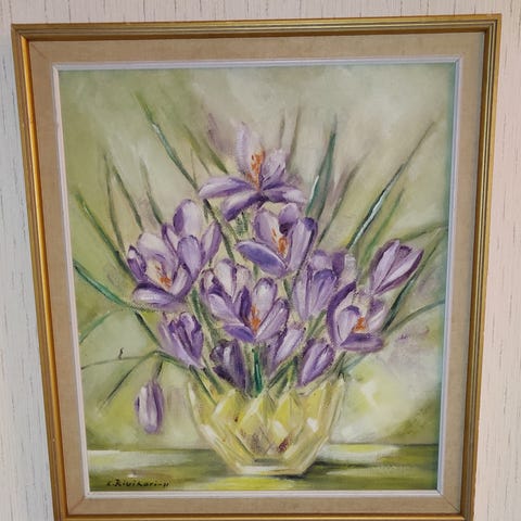 H. Hutto kukka-aiheinen öljymaalaus kehystetty