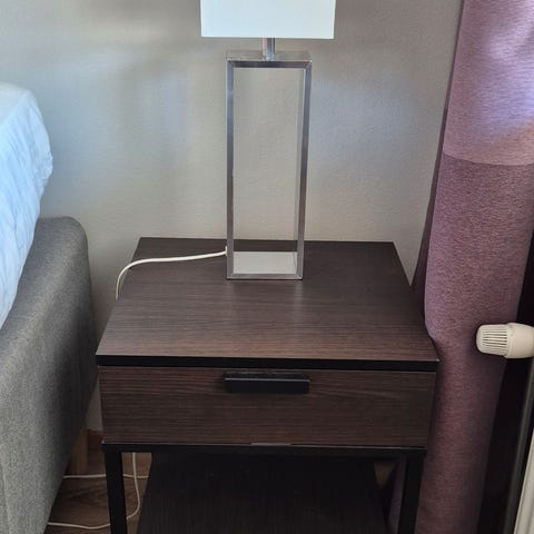Myydään hyväkuntoinen Ikean Trysil yöpöytä, väri valkoinen, hieman ruskeaa.