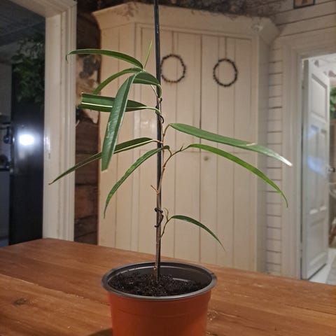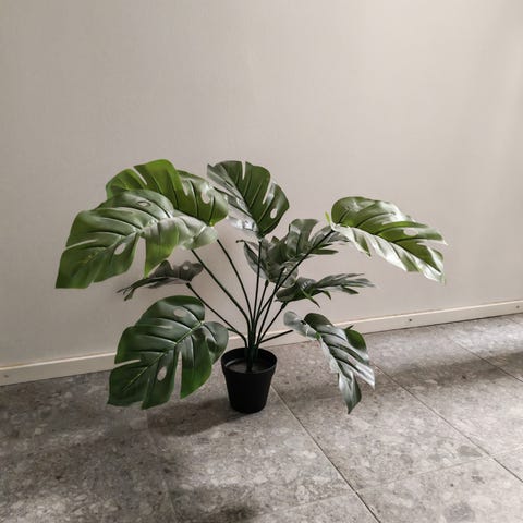 Upealehtinen PEIKONLEHTI. 75cm korkea,lehtien halkaisija 35cm. Tuettu. Ruukku uusi,vihreä istutusruukku.