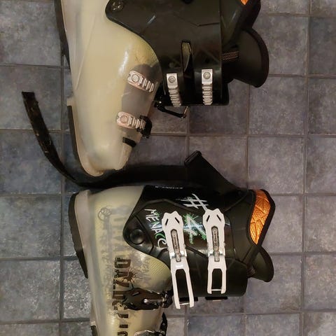 Dalbello lasten laskettelumonot, pohjan pituus 289 mm (merkitty myös koko 245). Monot ovat väriltään harmaa-mustat oransseilla yksityiskohdilla. Mallissa on neljä solkea ja tarrakiristys varressa, mikä mahdollistaa istuvuuden säätämisen. Soveltuvat lasten laskettelukäyttöön yhteensopivien alppisuksisiteiden kanssa.