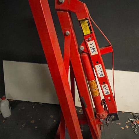 Stertil Koni hydraulinen kaksipilarinostin ajoneuvojen huolto- ja korjauskäyttöön. Nostin soveltuu henkilö- ja pakettiautojen nostamiseen. Laitteessa on valmistajakyltit sekä tarkastustarra, joista ilmenevät tekniset tiedot, kuten nostokyky, valmistusvuosi ja tarkastuspäivämäärä.
