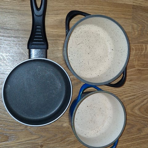 Alumiinipohjaisia siistejä kattiloita: 2x3l, 2x2,5l ja 2x1,5l. Yhden pikkukattilan kahvassa pikku halkeama mutta ei vaikuta käyttöön. Voidaan tarvittaessa myydä myös yksittäin 5€ kpl