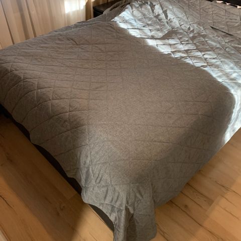 Todella kaunis vaaleanpunainen sametti- ja vuoritettu päiväpeite. Käytetty joskus yhden käden verran eli on kuin uusi. Tämä on ollut vuosi kaudet vain vaatehuoneen hyllyllä. Sopivasti raskas, jotta asettuu paikalleen ja laskeutuu kauniisti. Edes alla olevat kaksi eri vahvuista peitettä eivät päiväpeitteestä näy/erotu.