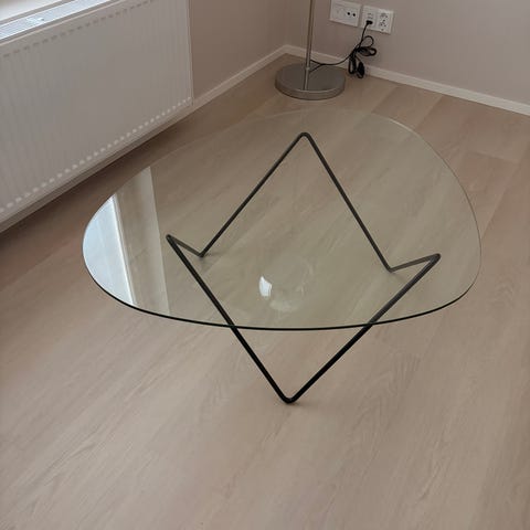 Gubin Pedrera-sohvapöytä on todellinen klassikko, jonka innoittajana on toiminut Antoni Gaudín suunnittelema La Pedrera -rakennus. Sohvapöydän jalkarakenne on mustaksi maalattua terästä ja pöytätaso on lasia. Suunnittelijana Barba Corsini.