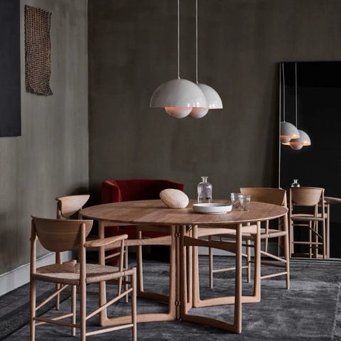 &Traditionin Flowerpot VP1 -riippuvalaisin. Riippuvalaisin on Verner Pantonin suunnittelema klassikko vuodelta 1968. Valaisin syntyi rauhaa ja rakkautta edistävän hippiliikkeen innostamana ja tänä päivänä se on yksi muotoiluhistoriamme rakastetuimmista ikoneista. Selkeälinjainen valaisin sopii esimerkiksi ruokapöydän ylle.