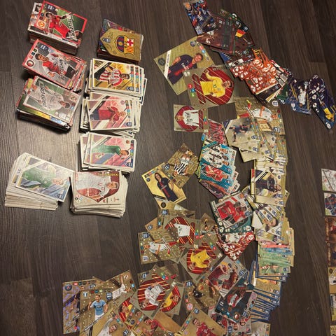 jalkapallo keräilykortit ja säilytysrasiat. Pakettiin kuuluu useita erisävyisiä metallisia säilytysrasioita sekä sekalainen valikoima jalkapalloaiheisia keräilykortteja, mukana muun muassa peruskortteja, erikois- ja Limited Edition -kortteja. Korteissa on eri maiden maajoukkue- ja seurajoukkuepelaajia useilta kausilta. Sopii keräilyyn, kokoelman täydentämiseen tai vaihtoihin muiden keräilijöiden kanssa. Iso osa korteista on EM- kisojen 2024 kortteja ja osa ainakin vuoden 2020 kortteja ja on myös paljon muita. On myös jotain harvinaisia kortteja mm. Zlatan Ibrahimovic vuoden 2014 kortti. Kortteja on yhteensä noin 220 kappaletta. Voi myös tarjota jostain korteista pelkästään.