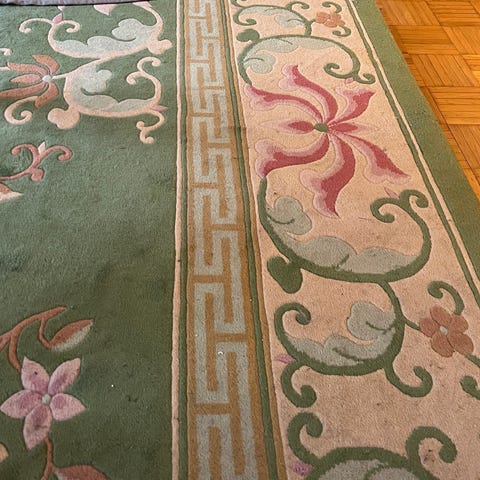 Hyvässä kunnossa oleva iso matto. Alkuperästä ei tietoa.