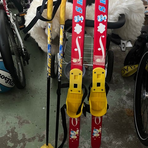 Lasten hiihtosukset 90cm ja sauvat 70cm. Muutaman kerran käytetty. Ei tarvitse monoja vaan kengät kiinnitetään remmeillä siteisiin. Keväthangille opettelemaan hiihtoa.