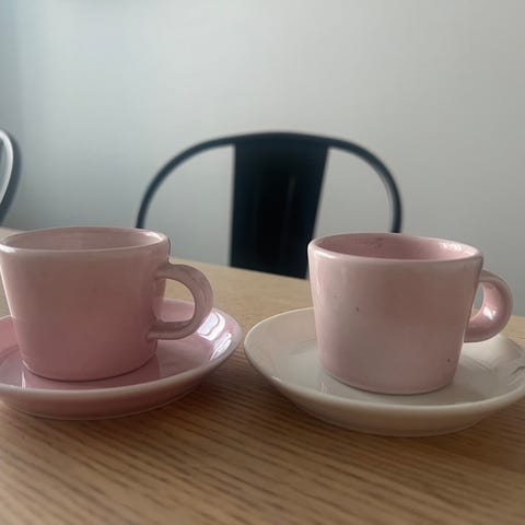 Arabian KoKo-sarjan vaaleanpunaiset kahvikupit 9kpl. Olleet vähällä käytöllä, kuin uudet, yhdestä kupista puuttuu tarra.
