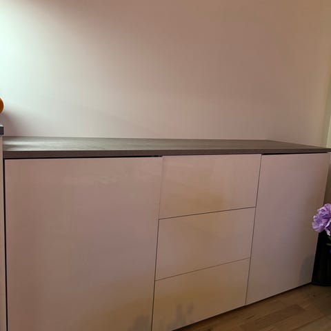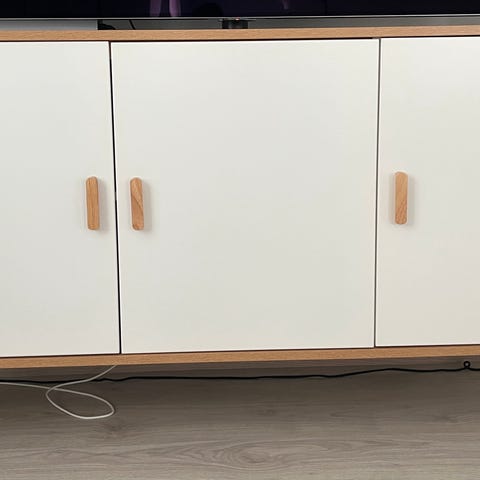 Jyskin Aarup senkki. 2 ovea ja 2 laatikkoa. Vasemman puoleinen ovi lähti muutossa irti, mutta on korjattu ja toimii normaalisti. Siistissä kunnossa.