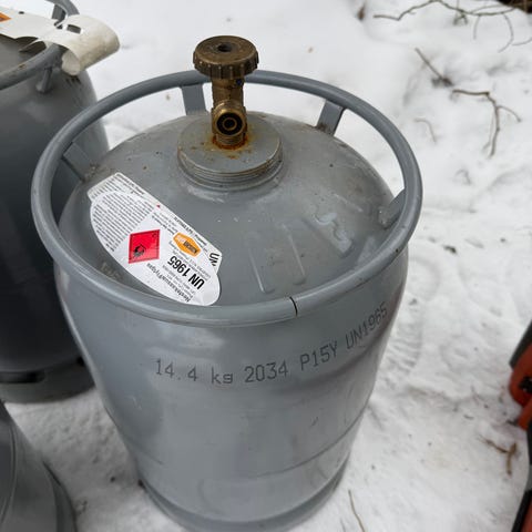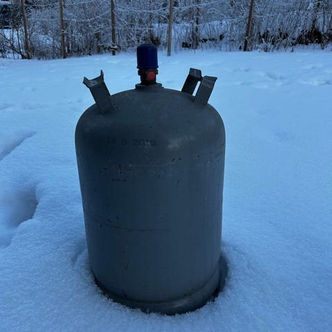Jäi ylimääräiseksi kun vaihdettiin komposiittipulloon. 2 kesää käytetty pihagrillissä.