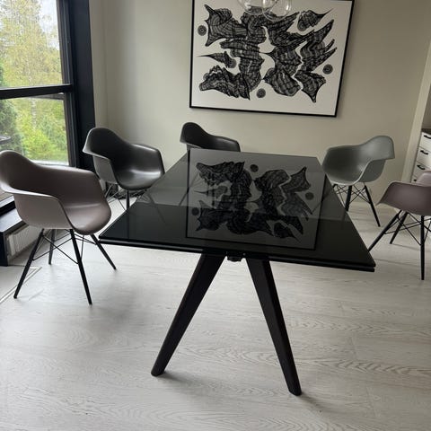 Calligariksen Omnia-ruokapöydän tyylikäs mutta pelkistetty olemus sopii erinomaisesti moderniin sisustukseen. Koko on 90 x 160-220cm. NOPEA NOUTO MUUTON VUOKSI :) Pöytä kannattaa purkaa osiin, sillä lasilevy on äärimmäisen painava.