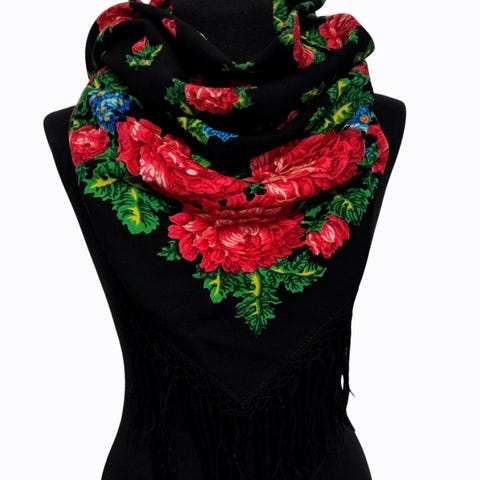 Myydään upea, perinteinen "maatuska-tyylinen" neliöhuivi. Huivissa on näyttävä kukkakuosi ja kaunis viininpunainen pohjaväri. Sopii täydellisesti asusteeksi, päähineeksi tai vaikkapa perinteisen asun täydentäjäksi.