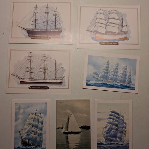 Osassa on nastan reikiä, koska ne on olleet työpaikan kahvihuoneen seinällä. Joissain kulmat vähän rutussa