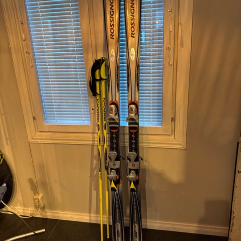 Rossignol Nova 2 laskettelusukset (144cm) rossignol monot (pohjassa lukee mm, oisko koko 40) sauvat (105cm) kypärä S/M (oma päänympärys 56cm)