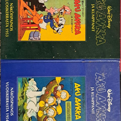 Muuton alta myyntiin lapsen keräilemät Disney Aku Ankka ja Roope setä kovakantiset sarjakuvakirjat, yhteensä 10 kirjaa. Kokoelma sisältää jouluaiheisia ja muita tarinakokoelmia, kuten Carl Barksin joulu -kirjoja sekä Aku Ankka -sarjakuvia kuten 1966 näköispainokset osa 1 ja 2 joissa kummassakin yli 800 sivua sarjakuvia! Lisäksi kommelluksia kerrakseen, kulmikkaat munat, atleetti, Aku ankka ekstra 21-26 sekä Roope sedän joulu.