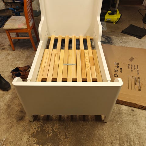 IKEA valkoinen jatkettava lasten-/juniorisänky. Valkoinen puinen runko ja sälepohja, pituus säädettävissä lapsen kasvaessa. Leveys 85cm, pituus 118-198cm.