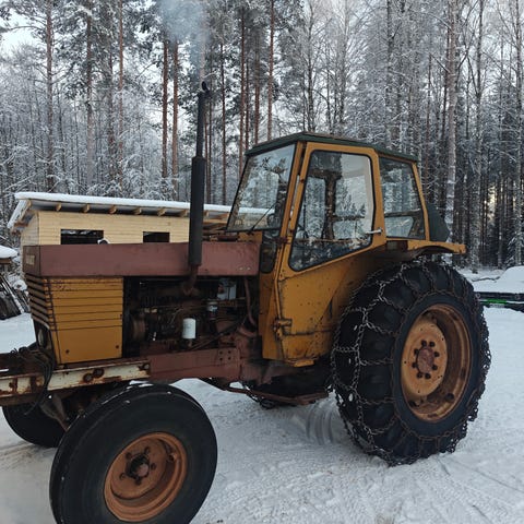 Traktori on rekisterissä ja tieliikennekelpoinen.