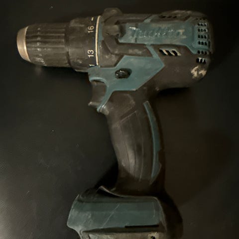 Makita akkuporakone 18V. Johdoton porakone/ruuvinväännin, jossa 18 voltin akku. Rungon väri on musta vaaleilla yksityiskohdilla. Soveltuu poraamiseen ja ruuvaamiseen erilaisissa kodin ja remontoinnin töissä, joissa tarvitaan kannettavaa akkukäyttöistä työkalua.