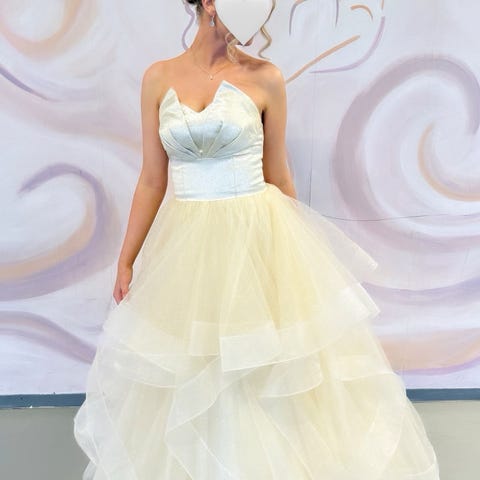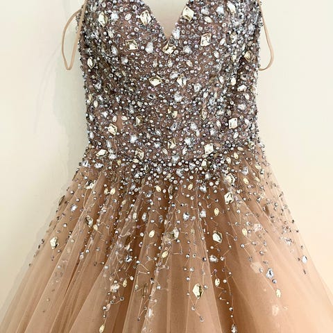 Shamppanjan/kullan värinen Mecco-liikkeestä ostettu ihanasti laskeutuva vanhojentanssimekko. Menee koossa XS-M.Selässä nyöritys,jolla mahdollista säätää kokoa.Kunto moitteeton,ei tahroja/repeytymiä.Mahdollinen pesu jää ostajalle.Vannehameen saa halutessaan mukaan.Ollut 160cm tanssijalla.Lisäkuvia saa pyytämällä.Tule sovittamaan!