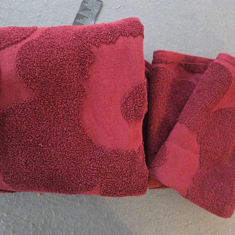 Myydään uusi Marimekko Unikko -kylpypyyhe.