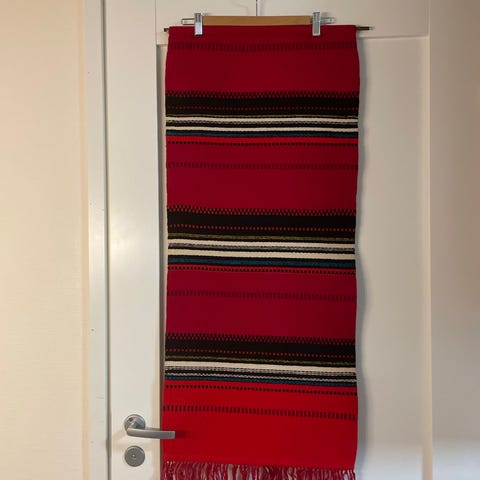 Iloisen värinen villaraanu. Lapin värein. Pudas, ehjä ja hajuton. Metallinen tanko mukaan.
