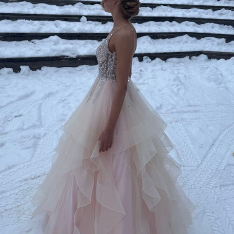 Zazabellan vanhojentanssimekko koko 32. Ostettu uutena syksyllä 2025, kerran tanssittu. Tanssija on 182 cm, mekkoa ei ole lyhennetty ollenkaan. Hintaan kuuluu vannehame ja pukupussi. Saa tulla sovittamaan. Nouto Vuosaari/Helsinki.